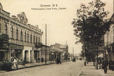 Keywords: Луганск. Петербургская улица. Отель «Россия».jpg Луганск Пете бу гская улица Отель «Россия» jpg < 1917 https //fotki yandex ru/users/humus777/album/425848/ not specified PD-RusEmpire History of Luhansk
