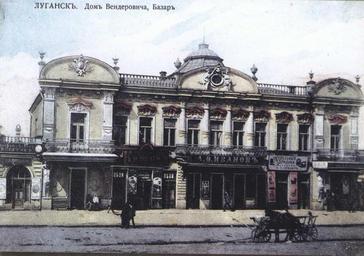 Keywords: Луганск. Дом Вендеровича, Базар.jpg Луганск Дом Венде овича База jpg < 1917 https //fotki yandex ru/users/humus777/album/425848/ not specified PD-RusEmpire History of Luhansk