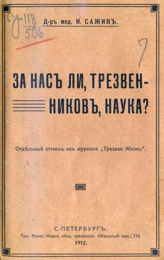 Keywords: Сажин И.В. За нас ли, трезвенников, наука? (1912) — (Титульный лист).jpg Image page Information field User Senapa/TemplateSenapaAlc PD-RusEmpire Literary works by Ivan Sazhin Books from Russia 1912 Title pages from Russia Books published in Saint Petersburg Temperance movement Literary works uploaded by Steven Pavlov from various sources Offprints from the magazine Trezvaya Zhizn Magazines of Russia unidentified year Сажин И.В. За нас ли, трезвенников, наука? (1912) — (Титульный лист).jpg Image page Information field User Senapa/TemplateSenapaAlc PD-RusEmpire Literary works by Ivan Sazhin Books from Russia 1912 Title pages of books from Russia Books published in Saint Petersburg Temperance movement Literary works uploaded by Steven Pavlov from various sources Offprints from the magazine Trezvaya Zhizn Magazines of Russia 1912 |