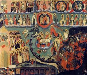 | Keywords: icon text surreal Кінець XVII ст. Київ. Дошка липова, левкас, олія, темпера, позолота. 124 х 147 х 2,5. The Last Judgement. Late 17th c. Kyiv. Oil, tempera on gesso-grounded three-piece lime-wood panel. Національний художній музей України. Альбом. Київ, "Артанія Нова", 2003. Кінець XVII ст. Київ. Дошка липова, левкас, олія, темпера, позолота. 124 х 147 х 2,5. The Last Judgement. Late 17th c. Kyiv. Oil, tempera on gesso-grounded three-piece lime-wood panel. Національний художній музей України. Альбом. Київ, "Артанія Нова", 2003. |