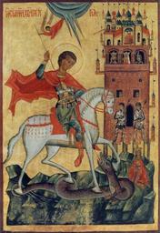 | Keywords: Друга пол. XV ст. Галичина. Дошка липова, левкас, темпера, позолота. 114 х 79 х 2. St. George the Dragon-Slayer. The latter half of the 15th c. Galychyna. Tempera, gilding on gesso-grounded two-piece lime-wood panel. ...XV ст. - важливий період у розвитку українського іконопису, доба високих звершень і мистецьких надбань. Спираючись на високі візантійські ідеали, він зберігає класичну пластичну іконописну форму, разом з тим посилюється тенденція до більш ліричної, гармонійно-вишуканої інтерпретації релігійних сюжетів. такою в музейному зібранні є ікона другої половини XV ст. - "Юрій-змієборець". Поетична споглядальність, довершеність лінійної форми, краса і вишуканість колориту є характерною прикметою мистецтва того часу. Лариса Членова Національний художній музей України. Альбом. Київ, "Артанія Нова", 2003 |