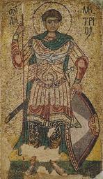 | Keywords: Київ, Михайлівський золотоверхий монастир, поч. XII ст. Нині - Третьяковська галерея, Москва. З пишного колись оздоблення Михайлівської церкви збережені лише Євхаристія, постаті Дмитра Солунського й архідиякона Стефана, що прикрашали вівтарні стовпи, а також постать апостола Фаддея з групою апостолів, які доповнюють з боків основну сцену центральної апсиди. ...Порівнюючи софіївські мозаїки з михайлівськими, можна стверджувати таке важливе положення: ні у Візантії, ні у Києві мозаїка не була догматичним мистецтвом. Вона розвивалась у контексті цілісного культурного процесу, піддаючись змінам і пошукам нових пластичних засобів. ...Індивідуалізація михайлівських апостолів і глибокий образ мозаїчного відтворення Димитрія Солунського з адресуванням до живого прототипа - князя Ізяслава (так вшановувалась пам'ять батька будівничим храму, князем Святополком - Михайлом), звучання михайлівських образів зі складним психологічним підґрунтям мало величезне значення для станкової ікони. Д.П. Крвавич, В.А. Овсійчук, С.О. Черепанова - Українське мистецтво, т.2, Львів, "Світ", 2004. - с. 151-152 Google Art Project |
