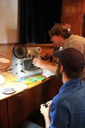 | Keywords: Skip Elsheimer, right, loads an 8mm film. Home Movie Day 2015 in Raleigh, NC. Saturday, October 17, 2015, at the State Archives of North Carolina. Photo by Georgia Ponton. Skip Elsheimer, right, loads an 8mm film. Home Movie Day 2015 in Raleigh, NC. Saturday, October 17, 2015, at the State Archives of North Carolina. Photo by Georgia Ponton. |