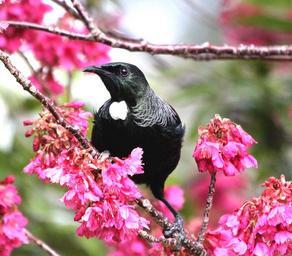 | Keywords: tui new zealand newzealand birds nature blossom pink outdoor plant bird tree colour animal new zealand Spring is in the air, NZ Tui Tūī are unique (endemic) to New Zealand and belong to the honeyeater family, which means they feed mainly on nectar from flowers of native plants. Found in: Forests throughout New Zealand, towns, and offshore islands Threats: Predation, habitat loss Tūī are common throughout New Zealand in forests, towns and on off-shore islands. They are found in native forests, bush reserves and bush remnants. They are adaptable birds, and can also be found in suburban areas, particularly in winter if there is a flowering gum about. These attractive birds can often be heard singing their beautiful melodies long before they are spotted. If you are fortunate to glimpse one you will recognise them by their distinctive white tuft under their throat. This tuft contrasts dramatically with the metallic blue-green sheen to their underlying black colour. Facts Tūī are unique (endemic) to New Zealand and belong to the honeyeater family, which means they feed mainly on nectar from flowers of native plants such as kōwhai, puriri, rewarewa, kahikatea, pohutukawa, rātā and flax. Occasionally they will eat insects too. They are important pollinators of many native trees and will fly large distances, especially during winter for their favourite foods. Tūī will live where there is a balance of ground cover, shrubs and trees. They are quite aggressive, and will chase other tūī and other species (such as bellbird, silvereye and kereru) away from good food sources. Spring is in the air, NZ Tui Tūī are unique (endemic) to New Zealand and belong to the honeyeater family, which means they feed mainly on nectar from flowers of native plants. Found in: Forests throughout New Zealand, towns, and offshore islands Threats: Predation, habitat loss Tūī are common throughout New Zealand in forests, towns and on off-shore islands. They are found in native forests, bush reserves and bush remnants. They are adaptable birds, and can also be found in suburban areas, particularly in winter if there is a flowering gum about. These attractive birds can often be heard singing their beautiful melodies long before they are spotted. If you are fortunate to glimpse one you will recognise them by their distinctive white tuft under their throat. This tuft contrasts dramatically with the metallic blue-green sheen to their underlying black colour. Facts Tūī are unique (endemic) to New Zealand and belong to the honeyeater family, which means they feed mainly on nectar from flowers of native plants such as kōwhai, puriri, rewarewa, kahikatea, pohutukawa, rātā and flax. Occasionally they will eat insects too. They are important pollinators of many native trees and will fly large distances, especially during winter for their favourite foods. Tūī will live where there is a balance of ground cover, shrubs and trees. They are quite aggressive, and will chase other tūī and other species (such as bellbird, silvereye and kereru) away from good food sources. |