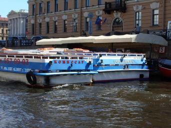 Keywords: Комиссар и Государь. Санкт-Петербург.JPG ru Суда Комисса и Госуда ь стоящие ядом Санкт-Пете бу г own Georg Pik 2010-07-21 Water transport in Saint Petersburg Moika River from Red Bridge to Postoffice Bridge