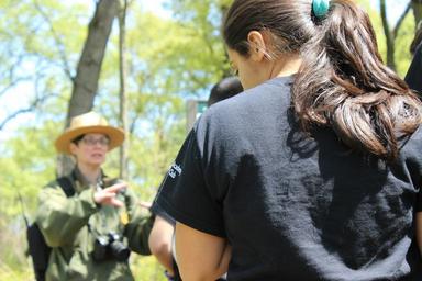 MAKE A MEME View Large Image Students inspect their surroundings as Ranger Kim Swift talks. Students inspect their surroundings as Ranger Kim Swift talks.