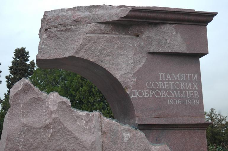| Keywords: Памяти советских добровольцев - название.jpg es Inscripción dedicatoria en ruso sobre el monumento a los voluntarios soviéticos caídos en la Guerra Civil en España ru адпись-посвящение на усском языке на памятнике павшим советским доб овольцам установленном в ад иде Испания own Alexander Batrakov 2006-08-30 Monuments and memorials to the fallen of the Republican side in the Spanish Civil War Cementerio de Fuencarral Russian inscriptions in Spain | ||||