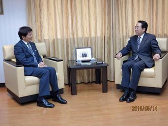 Keywords: 亞協李會長(右)與日本職棒北海道火腿隊球團大社代表啟二會談一景。 aear20130808 亞東 關係協會