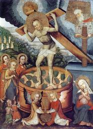 Christ in the Winefat. Late 17th c. Kyivshchyna. Tempera, gold-tinted silvering, engraving on gesso-grounded three-piece lime-wood panel.
