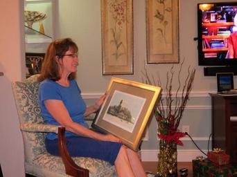 Keywords: Peg Deci admiring her framed watercolor of the Sanibel Island lighthouse