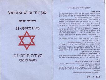 Keywords: מד"א, תעודת תורם דם, ביטוח קיבוצי.jpg he מד א תעודת תור ד ביטוח קיבוצי 1998 תעודה אישית ש י מגן דוד אדו Uploaded with UploadWizard Blood donation in Israel