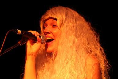 Keywords: pdx pop now 2015 summer outdoormusic outdoor concert stage sunlight tracks bridge drummer singer guitarist coco columbia jazz electronic rock weird spotlight black background music musician people performer Coco Columbia Coco Columbia