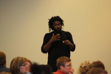 Keywords: Award-winning author Jason Reynolds returned to Kalamazoo on Wednesday, April 13, 2016, for a Meet the Author event at Central Library. Jason recently received the prestigious Walter Dean Myers Award for Outstanding Children’s Literature, and the American Library Association’s 2016 Coretta Scott King Honor Award for outstanding African American authors. Photo by Farrell Howe. www.kpl.gov Award-winning author Jason Reynolds returned to Kalamazoo on Wednesday, April 13, 2016, for a Meet the Author event at Central Library. Jason recently received the prestigious Walter Dean Myers Award for Outstanding Children’s Literature, and the American Library Association’s 2016 Coretta Scott King Honor Award for outstanding African American authors. Photo by Farrell Howe. www.kpl.gov