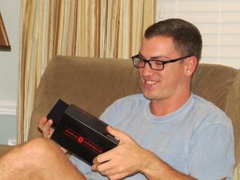 Keywords: Ryan Deci opening his Crimson Trace gift.
