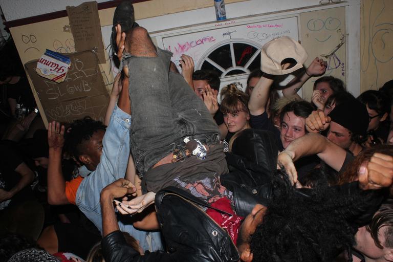 Keywords: show band metal rock loud heavy noisey weird punk diy live concert performance music portland pdx oregon usa drummer bassist singer house houseshow darkplace ring mosh crowd surf crowdsurf rowdy fun songs sloths slothspdx twenty years hardcore people indoor Sloths Sloths