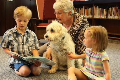 Keywords: Reading with Bailey at Kalamazoo Public Library. dogs public reading library international bailey kalamazoo therapy