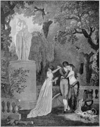 | Keywords: Imitation-of-Antiquity-joke-1795.jpg Artwork Thérèse-Eléonore Lingée after Dutailly Very little is known of the artist Dutailly http //www arcadja com/auctions/en/dutailly/artist/114336/ Creator Thérèse Eléonore Lingée The Imitation of Antiquity An originally somewhat humorous French engraving by Thérèse-Eléonore Lingée based on an apparently now-lost painting by Dutailly 1795 This is a commentary on the neoclassical craze for all things Greek and Roman including in women's clothing One of the women has laid aside her bonnet gloves and shawl and the man his hat while the other woman who has taken off one of her gloves which she is holding in her other hand is trying to pose the couple in close imitation of the ancient statue on the tall pedestal at left The painting/engraving seems to be posing the question since the Classical world was held up as a model why not go all the way in your emulation Especially of course if you can use it as an occasion for flirting and an excuse to get a kiss from a pretty girl Note that the flesh-and-blood gentleman's feet are in the fourth position of dancing quite unlike those of his marble counterpart > 1795 engraving unknown other versions PD-old-100 Dutailly Thérèse Eléonore Lingée Fashion in 1795 18th-century engravings Balustrades in art Caricatures of France Empire silhouette Kisses in art Neoclassical paintings Statues in art |