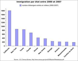 Keywords: Immigration par etat 2000-2007.svg fr Nombre d'entrées d'étrangers par état entre 2000 et 2007 en milliers Source U S Census Bureau 2009 Own Urban 2009-04-26 Demographic charts of the United States