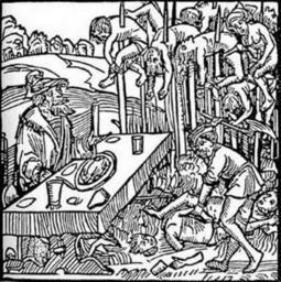 | Keywords: Impaled.gif Woodcut from the title page of a 1499 pamphlet published by Markus Ayrer in Nuremberg It depicts Vlad III the Impaler identified as Dracole wyade Draculea voivode dining among the impaled corpses of his victims Original caption Hie facht sich an ein graussemliche erschrockenliche hystorien von dem wilden wütrich Dracole wayde Wie er die leut gespist hat und gepraten und mit den haubtern in in einem kessel gesoten und wie er die leut geschunden hat und zerhacken lassen als ein kraut Item er hat auch den mütern ire kind gepraten und sy haben müssen selber essen Und vil andere erschrockenliche ding die in dissem Tractat geschriben stend Und in welchem land er geregiret hat en wikipedia Pauk CommonsHelper 1499 Markus Ayrer PD-old-100 File Vlad Tepes - Blatt 3 jpg PD-old-100 Vlad III the Impaler in engravings Impalement Woodcuts of Germany Massacres in Romania Massacres in art خازوق |