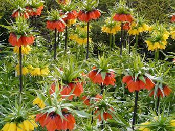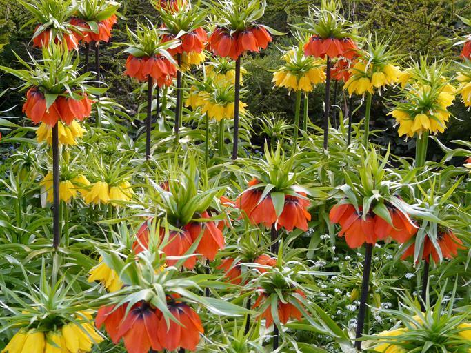 Keywords: imperial crown flower blossom bloom yellow orange fritillaria imperialis fritillaria lily family liliaceae toxic herbaceous plant plant flora green exotic botanical garden garden