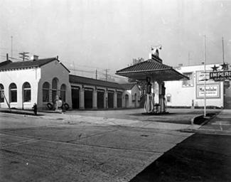 | Keywords: blackandwhite monochrome outdoor black and white Imperial Oil Service Station at 2210 Cornwall Avenue at Yew Street in Kitsilano. Built in 1932 in the then-popular Spanish Colonial Revival style. The building may still exist as an eatery (last as a Malones bar & grill). [Vancouver Public Library; Leonard Frank, photographer] Imperial Oil Service Station at 2210 Cornwall Avenue at Yew Street in Kitsilano. Built in 1932 in the then-popular Spanish Colonial Revival style. The building may still exist as an eatery (last as a Malones bar & grill). [Vancouver Public Library; Leonard Frank, photographer] |