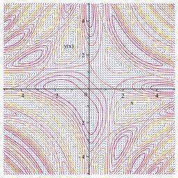 | Keywords: Implicit Function Theorem.svg Demonstration of the Implicit Function Theorem The curves are the implicitly defined as <math>f x y \sin x+y -\cos xy C</math> with various values of the constant <math>C</math> The background slope field shows that if one is given a point on the curve then one can in principle generate a local piece of the curve defined as an explicit function of x or at least approximate it by tracing from slope field e g approximation by Euler's method which can be made as accurate as desired by choosing small step size; as step size approaches zero the result matches the actual local piece of curve more accurately Own 2008-05-08 Saran T Vector fields Implicit curves |
