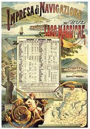 Keywords: Impresa di Navigatione Lago Magiore 1885.jpg en Old navigation chart for ferries on the Lago Maggiore old poster Author 1885 PD-old Tourism in Italy Lake Maggiore in art Timetables 1885 in Italy