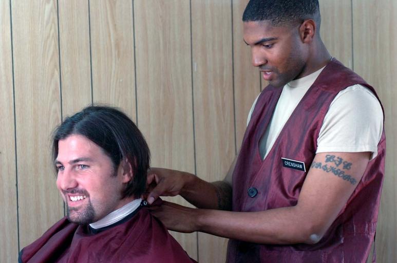 | Keywords: Impromptu UFC Warrior Visit Brings Smiles, Photo Ops and ... A Haircut? DVIDS52234.jpg en Oklahoma City Okla native Staff Sgt Brian Crenshaw a 1st Cavalry Division Soldier prepares Ultimate Fighter Justin McCully for a haircut McCully promised he would allow a Soldier to 'shave' his head in Iraq during a recent USO tour visit in Iraq Crenshaw is a certified barber and runs his own barbershop outside the division headquarters at Camp Liberty in western Baghdad Crenshaw gave McCully his first hair cut in several years at the barbershop on Aug 2 2007-08-02 Capt Linda North https //www dvidshub net/image/52234 52234 2007-08-03 13 08 BAGHDAD IQ PD-USGov 1st Cavalry Division United States Camp Liberty Images from DoD uploaded by Fæ Impromptu UFC Warrior Visit Brings Smiles, Photo Ops and ... A Haircut? DVIDS52234.jpg en Oklahoma City Okla native Staff Sgt Brian Crenshaw a 1st Cavalry Division Soldier prepares Ultimate Fighter Justin McCully for a haircut McCully promised he would allow a Soldier to 'shave' his head in Iraq during a recent USO tour visit in Iraq Crenshaw is a certified barber and runs his own barbershop outside the division headquarters at Camp Liberty in western Baghdad Crenshaw gave McCully his first hair cut in several years at the barbershop on Aug 2 2007-08-02 Capt Linda North https //www dvidshub net/image/52234 52234 2007-08-03 13 08 BAGHDAD IQ PD-USGov 1st Cavalry Division United States Camp Liberty Images from DoD uploaded by Fæ |