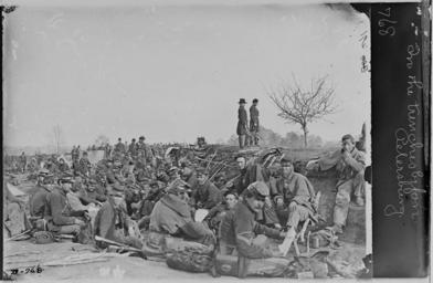 | Keywords: In the trenches before Petersburg, Va - NARA - 525173.jpg Scope and content General notes The Petersburg identification appearing in the official caption received by NARA from the Army Signal Corps and appearing as well in the 1897 War Department Library Catalogue based presumably on rough captioning that came to the War Department from the Mathew Brady Studio when the War Department purchased the glass negatives from Brady in 1874-1875 has been disputed by Civil War historians and photo-historians for a number of years In the early 1980s research by Larry Strayer Brian Pohanka Harris Andrews and William Frassanito uncovered documentary evidence suggesting that this image of Union forces was taken by Andrew J Russell just before the Second Battle of Fredericksburg in the spring of 1863 not at Petersburg Virginia as the caption for the image among NARA's holdings of Brady photographs notes A group of five Russell photographic prints bearing Fredericksburg references in their captions including another copy of this image can be found in the holdings of the Western Reserve Historical Society WRHS in Cleveland Ohio The hand written caption on the WRHS copy of the photo presumably by A J Russell the photographer is Line of Brooks' Division at Fredericksburg May 2 1863 Rebels charged here 20 minutes after the picture was taken but were repulsed and driven back As well the U S Army Heritage and Education Center has this same photo listed with a Fredericksburg origin and a smaller archive at the Medford Massachusetts Historical Society has it listed as Entrenched Union soldiers May 1863 which corresponds to Fredericksburg rather than Petersburg 525173 Local identifier 111-B-768 War Department Office of the Chief Signal Officer 08/01/1866 - 09/18/1947 NARA-Author Brady National Photographic Art Gallery Washington D C 1858 - Photographer 1135962 <br /> Still Picture Records Section Special Media Archives Services Division NWCS-S National Archives at College Park 8601 Adelphi Road College Park MD 20740-6001 circa 1860 1865 Record group Record Group 111 Records of the Office of the Chief Signal Officer 1860 - 1985 Record group ARC 440 Mathew Brady Photographs of Civil War-Era Personalities and Scenes compiled 1921 - 1940 documenting the period 1860 - 1865 Series ARC 524418 File unit File unit ARC Variant control numbers NAIL Control Number NWDNS-111-B-768 Other versions <gallery> File In_the_trenches_before_Petersburg _Va_-_NARA_-_525173 tif tif File In_the_trenches_before_Petersburg _Va_-_NARA_-_525173 jpg jpg </gallery> NARA-cooperation PD-USGov Siege of Petersburg |