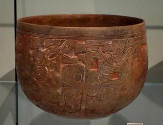 | Keywords: Incised creamware bowl depicting two nobles hunting a deer, Maya, Maya lowlands region, Late Classic Period, 600-900 AD, ceramic - Royal Ontario Museum - DSC04486.JPG en Exhibit in the Royal Ontario Museum Toronto Ontario Canada This work is old enough so that it is in the public domain Photography was permitted in the museum without restriction 2013-10-08 16 34 49 own Daderot cc-zero Maya ceramics in the Royal Ontario Museum Uploaded with UploadWizard | ||||