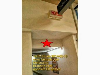 | Keywords: retail melbourne australia The "No Exit" sign is installed too high up and is obstructed by the black toilet sign.