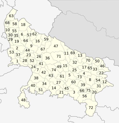 | Keywords: India Uttar Pradesh districts numbered 2012.svg en Locator map of the districts of Uttar Pradesh India numbered as of 2012 Based on File Uttar Pradesh locator map svg Districts Agra Aligarh Allahabad Ambedkar Nagar Amethi Amroha Auraiya Azamgarh Badaun Baghpat Bahraich Ballia Balrampur Banda Barabanki Bareilly Basti Bijnor Bulandshahr Chandauli Chitrakoot Deoria Etah Etawah Faizabad Farrukhabad Fatehpur Firozabad Gautam Buddha Nagar Ghaziabad Ghazipur Gonda Gorakhpur Hamirpur Hapur Hardor Hathras Jalaun Jaunpur Jhansi Kannauj Kanpur Dehat Kanpur Nagar Kasganj Kaushambi Kushinagar Lakhimpur Kheri Lalitpur Lucknow Maharajganj Mahoba Mainpuri Mathura Mau Meerut Mirzapur Moradabad Muzaffarnagar Pilibhit Pratapgarh Raebareli Rampur Saharanpur Sambhal Sant Kabir Nagar Sant Ravidas Nagar Shahjahanpur Shamli Shravasti Siddharthnagar Sitapur Sonbhadra Sultanpur Unnao Varanasi India_Uttar_Pradesh_districts_2012 svg India_Uttar_Pradesh_districts svg Uttar_Pradesh_locator_map svg Faizhaider wikipedia en derivative work BishkekRocks <span class signature-talk >talk</span> derivative work Pitichinaccio <span class signature-talk >talk</span> derivative work NordNordWest 2013-01-19 India_Uttar_Pradesh_districts_2012 svg Districts of Uttar Pradesh SVG maps of Uttar Pradesh Locator maps of Uttar Pradesh Maps numbering PD-user-w |