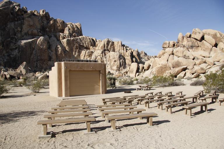 Keywords: joshua tree national park joshuatreenationalpark indian cove indiancove campground desert boulders evening program eveningprogram camping amphitheater outdoor architecture ruins landscape Indian Cove Campground lies amid the huge, steep rock formations for which Joshua Tree National Park is known. Because of its proximity to many rock climbing routes, it is a popular camping location for climbers. Indian Cove is one of only two campgrounds in the park that can be reserved during the busy winter season; it is open on a first-come, first-served basis from June 1 through September 29. Travelers who enjoy warm, dry winters flock to Joshua Tree from October through May, when temperatures hover between 70-90 degrees during the day and drop to a 40-60 degree range at night. Summer is the park's off-season due to the uncomfortably-high desert heat. Indian Cove is at an elevation of 3,200 feet. For more information about camping at Joshua Tree National Park, visit www.nps.gov/jotr/planyourvisit/camping.htm. NPS Photo. Indian Cove Campground lies amid the huge, steep rock formations for which Joshua Tree National Park is known. Because of its proximity to many rock climbing routes, it is a popular camping location for climbers. Indian Cove is one of only two campgrounds in the park that can be reserved during the busy winter season; it is open on a first-come, first-served basis from June 1 through September 29. Travelers who enjoy warm, dry winters flock to Joshua Tree from October through May, when temperatures hover between 70-90 degrees during the day and drop to a 40-60 degree range at night. Summer is the park's off-season due to the uncomfortably-high desert heat. Indian Cove is at an elevation of 3,200 feet. For more information about camping at Joshua Tree National Park, visit www.nps.gov/jotr/planyourvisit/camping.htm. NPS Photo.