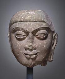| Keywords: Indian - Head, Probably of the Buddha - Walters 2590.jpg The sculptors of Mathura developed ideals of beauty that influenced all later Indian sculptors Texts describe the perfect man who is beautifully proportioned The parts of his body are like forms found in nature and his eyes are like lotus flowers Sculptors conceived of the body of the perfect man as being smoothly rounded; even images of gods who perform miraculous feats of strength have no visible muscles In Buddhist art of the 2nd and 1st centuries BC the Buddha the enlightened prince who had imparted the truths he had discovered to a group of disciples several centuries earlier was not depicted Sculptors suggested his presence by devices such as footprints Buddhist monks or lay people had to imagine him From the 1st through the 5th century AD sculptors at Mathura were laying the foundations for much Indian religious art using the easily identified mottled red sandstone as a medium They made images not only for Buddhists but also for Hindus and Jains Although no trait remains that can prove the identification this head could have come from a stele depicting the seated Buddha with right hand raised in a gesture of salutation what was later called the fear not gesture and may have lost its topknot and the reserve of stone attaching it to a backslab ca 2nd century Kushan mottled pink sandstone cm 26 7 24 2 accession number 25 90 40753 Sale Sotheby's New York September 20 1985 lot 325 Private collection Walters Art Museum Anonymous gift 1987 place of origin Mathura India Walters Art Museum license Sculptures from India in the Walters Art Museum Media contributed by the Walters Art Museum needs category review Statues of the Buddha from India Art of the Kushan Empire from Mathura 2nd-century art of India Buddhist art in the Walters Art Museum |