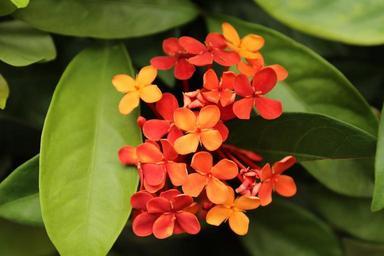 Keywords: indian jasmine ixora flower leaves nature red flowers spring garden flowerpot bouquet petals botany