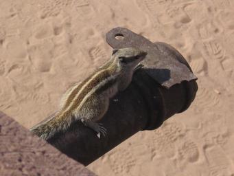 Keywords: Indian Palm Squirrel.jpg An Indian Palm Squirrel at the Mehrangarh Fort in Jodhpur India Own 2006-12-17 SmokeySteve Funambulus palmarum Mehrangarh Fort