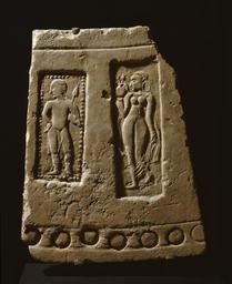 | Keywords: Indian - Tile with Human Figures - Walters 482867.jpg This is a floor tile from a Buddhist monastery Joined with other tiles it made an enclosing circle The male figure is a guardian The graceful woman in the see-through dress holding a vase is most likely a river goddess suggesting prosperity century 4 5 terracotta cm 47 6 36 8 6 4 accession number 48 2867 36398 William Wolff Gallery New York New York date and mode of acquisition unknown John and Berthe Ford Baltimore April 1974 by purchase Walters Art Museum John Berthe Ford 2010 Desire and Devotion Art from India Nepal and Tibet in the John and Berthe Ford Collection The Walters Art Museum Baltimore; Birmingham Museum of Art Birmingham; Santa Barbara Museum of Art Santa Barbara; Albuquerque Museum Albuquerque 2001-2003 The Arts of Kashmir Asia Society New York 2007-2008 place of origin Harwan Kashmir India Walters Art Museum license Art of India in the Walters Art Museum Media contributed by the Walters Art Museum needs category review |