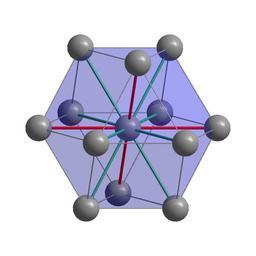 Keywords: Indium cp.png Crystal structure of indium coordination polyhedron about one indium atom in the shape of a distorted cube-octahedron Own 09/17/07 Solid State Indium