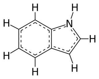Keywords: Indole 2D aromatic full.svg Full structural formula of the indole molecule showing the delocalized aromatic bonding 2012-08-30 own Jynto other fields c 1 + cc-zero Images by Jynto Indole