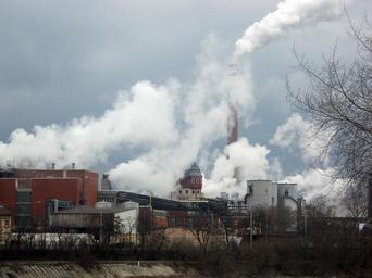 Keywords: industrial plants smoke chimneys winter steam