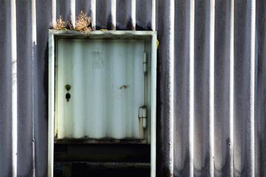 Keywords: industry factory graphically leave architecture building door old ruin stainless rusty metal roof overgrown moss schatte