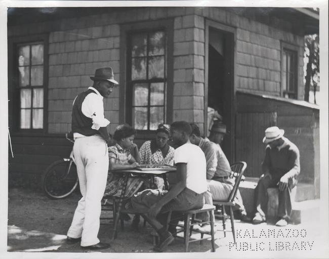 | Keywords: kalamazoo public library michigan history photography infant welfare station children building gull road north street blackandwhite black and white Group of unidentified people sitting and standing outside the Infant Welfare Station No. 1. Station is on the southwest corner of Gull and North Streets. Entrance to the station is visible in the background. KPL catalogue number P-893. Group of unidentified people sitting and standing outside the Infant Welfare Station No. 1. Station is on the southwest corner of Gull and North Streets. Entrance to the station is visible in the background. KPL catalogue number P-893. |
