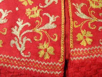 | Keywords: Informal woman's jacket detail, Italy, 1630-1650, knitted silk yarn - Patricia Harris Gallery of Textiles & Costume, Royal Ontario Museum - DSC09365.JPG Exhibit in the Patricia Harris Gallery of Textiles Costume Royal Ontario Museum Toronto Ontario Canada This exhibit is old enough so that it is in the public domain and photography was permitted in the museum I took this photograph and release it into the public domain Daderot 2011-11-20 15 46 06 Daderot cc0 cc0 Patricia Harris Gallery of Textiles Costume at the Royal Ontario Museum 17th-century textiles 17th-century fashion |