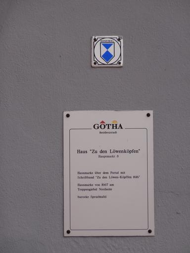 | Keywords: Infotafel am Gebäude Hauptmarkt 8, Gotha.JPG de Infotafel am Gebäude Hauptmarkt 8 Gotha Thüringen en Plaque at the house Hauptmarkt 8 Gotha Thuringia Germany 2015-03-16 12 32 53 own Aschroet other versions 50 948891388889 10 701694722222 heading 71 cc-zero Uploaded with UploadWizard Plaques in Gotha ImageNote 1 1281 2268 1599 1689 3672 4896 2 GOTHA Residenzstadt Haus Zu den Löwenköpfen Hauptmarkt 8 Hausmarke über dem Portal mit Schriftband Zu den Löwen-Köpffen 1616 Hausmarke von 1667 am Treppengiebel Nordseite Barocke Spruchtafel ImageNoteEnd 1 ImageNote 2 1869 751 449 155 3672 4896 2 DENKMAL ImageNoteEnd 2 |