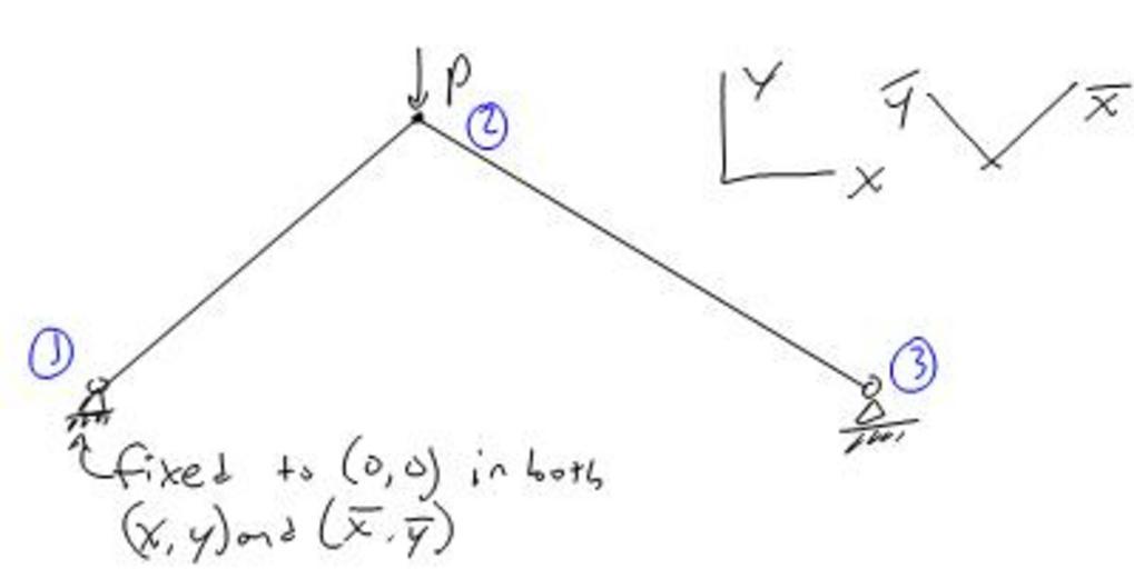 Keywords: Initial Diagram.jpg en 2 bar truss system drawn in FEA notes FEA notes Sam Miorelli Wikiversity EML4500
