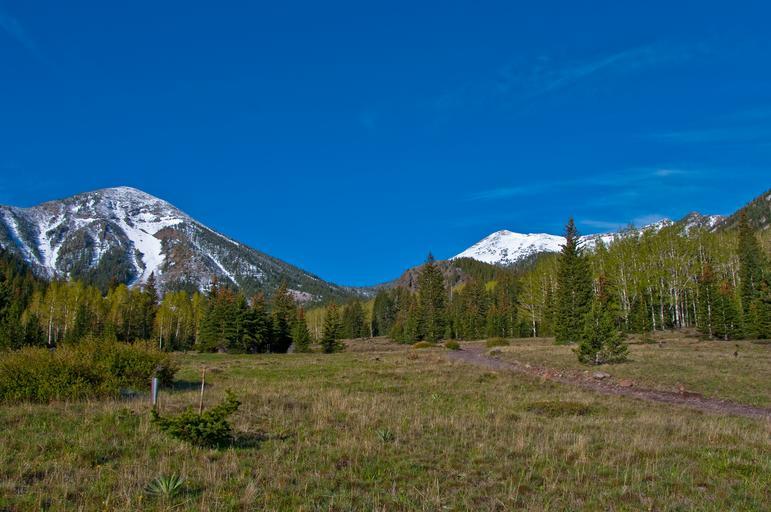 Keywords: arizona coconino national forest coconinonationalforest flagstaff flagstaff ranger district flagstaffrangerdistrict forest service forestservice inner basin trail innerbasintrail inner basin trail no. 29 innerbasintrailno29 san francisco mountain sanfranciscomountain san francisco peaks sanfranciscopeaks usfs caldera forest hike hiking mountain outdoors panshot peaks snow trail volcano united states unitedstates outdoor landscape grassland field hill mountainside foothill The Inner Basin Trail ascends from Lockett Meadow into the caldera of the San Francisco Peaks, an extinct volcano and home of the tallest peaks in Arizona. The first 1.7 miles of the trail winds through the extensive aspen forest flanking the upper reaches of the Peaks, joining the Waterline Trail briefly before following a jeep road into the caldera. The trail starts at an elevation of 8665 feet, gaining approximately 1200 feet over 2 miles on its way into the Inner Basin. The trail continues another 2 miles, gaining an additional 600 feet or so to join up with the Weatherford Trail. Photo by Deborah Lee Soltesz, May 2009. Credit: U.S. Forest Service, Coconino National Forest. For more information about this trail, see the Inner Basin No. 29 trail description on the Coconino National Forest website. The Inner Basin Trail ascends from Lockett Meadow into the caldera of the San Francisco Peaks, an extinct volcano and home of the tallest peaks in Arizona. The first 1.7 miles of the trail winds through the extensive aspen forest flanking the upper reaches of the Peaks, joining the Waterline Trail briefly before following a jeep road into the caldera. The trail starts at an elevation of 8665 feet, gaining approximately 1200 feet over 2 miles on its way into the Inner Basin. The trail continues another 2 miles, gaining an additional 600 feet or so to join up with the Weatherford Trail. Photo by Deborah Lee Soltesz, May 2009. Credit: U.S. Forest Service, Coconino National Forest. For more information about this trail, see the Inner Basin No. 29 trail description on the Coconino National Forest website.
