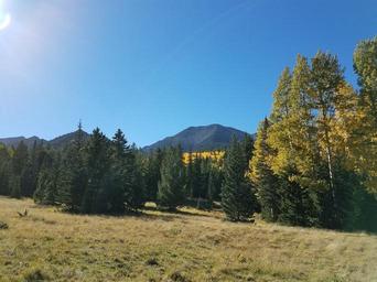 | Keywords: inner basin trail innerbasintrail inner basin trail no. 29 innerbasintrailno29 inner basin innerbasin san francisco peaks sanfranciscopeaks san francisco mountain sanfranciscomountain coconino national forest coconinonationalforest usfs flagstaff autumn fall colors fallcolors forest service forestservice forest outdoor hill landscape Fall colors in the Inner Basin, September 23, 2016. The Inner Basin Trail ascends from Lockett Meadow into the caldera of the San Francisco Peaks, an extinct volcano and home of the tallest peaks in Arizona. The first 1.7 miles of the trail winds through the extensive aspen forest flanking the upper reaches of the Peaks, joining the Waterline Trail briefly before following a jeep road into the caldera. The trail starts at an elevation of 8665 feet, gaining approximately 1200 feet over 2 miles on its way into the Inner Basin. The trail continues another 2 miles, gaining an additional 600 feet or so to join up with the Weatherford Trail. Photo by George Jozens, September 23, 2016. Source: U.S. Forest Service, Coconino National Forest. See Lockett Meadow Campground and Inner Basin No. 29 for information about this area of the Peaks on the Coconino National Forest website. Fall colors in the Inner Basin, September 23, 2016. The Inner Basin Trail ascends from Lockett Meadow into the caldera of the San Francisco Peaks, an extinct volcano and home of the tallest peaks in Arizona. The first 1.7 miles of the trail winds through the extensive aspen forest flanking the upper reaches of the Peaks, joining the Waterline Trail briefly before following a jeep road into the caldera. The trail starts at an elevation of 8665 feet, gaining approximately 1200 feet over 2 miles on its way into the Inner Basin. The trail continues another 2 miles, gaining an additional 600 feet or so to join up with the Weatherford Trail. Photo by George Jozens, September 23, 2016. Source: U.S. Forest Service, Coconino National Forest. See Lockett Meadow Campground and Inner Basin No. 29 for information about this area of the Peaks on the Coconino National Forest website. |