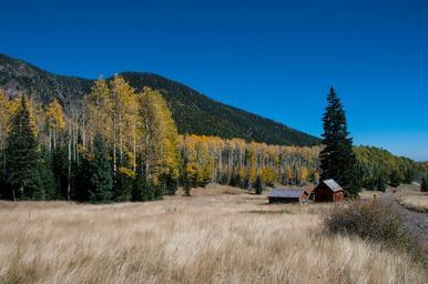 Keywords: arizona coconino national forest coconinonationalforest flagstaff ranger district flagstaffrangerdistrict forest service forestservice inner basin trail innerbasintrail inner basin trail no. 29 innerbasintrailno29 san francisco mountain sanfranciscomountain san francisco peaks sanfranciscopeaks usfs aspen autumn fall color fallcolor fall foliage fallfoliage flagstaff forest hiking mountain outdoors peaks trail outdoor landscape hill mountainside The Inner Basin Trail ascends from Lockett Meadow into the caldera of the San Francisco Peaks, an extinct volcano and home of the tallest peaks in Arizona. The first 1.7 miles of the trail winds through the extensive aspen forest flanking the upper reaches of the Peaks, joining the Waterline Trail briefly before following a jeep road into the caldera. The trail starts at an elevation of 8665 feet, gaining approximately 1200 feet over 2 miles on its way into the Inner Basin. The trail continues another 2 miles, gaining an additional 600 feet or so to join up with the Weatherford Trail. Photo by Deborah Lee Soltesz, October 1, 2015. Source: U.S. Forest Service, Coconino National Forest. See Lockett Meadow Campground and Inner Basin No. 29 for information about this area of the Peaks on the Coconino National Forest website. The Inner Basin Trail ascends from Lockett Meadow into the caldera of the San Francisco Peaks, an extinct volcano and home of the tallest peaks in Arizona. The first 1.7 miles of the trail winds through the extensive aspen forest flanking the upper reaches of the Peaks, joining the Waterline Trail briefly before following a jeep road into the caldera. The trail starts at an elevation of 8665 feet, gaining approximately 1200 feet over 2 miles on its way into the Inner Basin. The trail continues another 2 miles, gaining an additional 600 feet or so to join up with the Weatherford Trail. Photo by Deborah Lee Soltesz, October 1, 2015. Source: U.S. Forest Service, Coconino National Forest. See Lockett Meadow Campground and Inner Basin No. 29 for information about this area of the Peaks on the Coconino National Forest website.