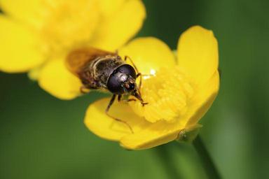 Keywords: insect blossom bloom eyes compound eyes yellow hoverfly macro close roadside