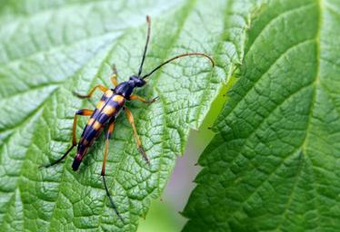 Keywords: insect żółtoczarny long oblong antennae mustache foliage green nature garden